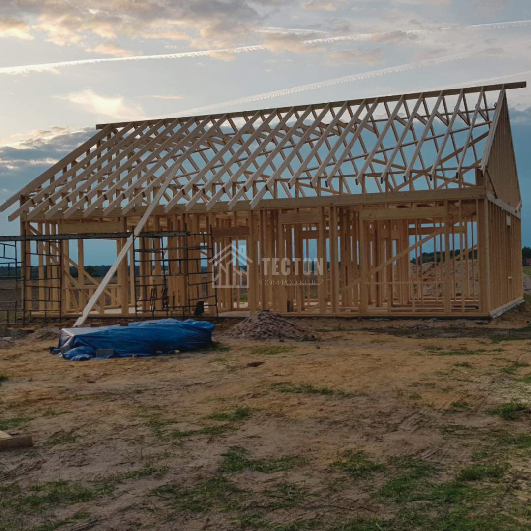 Dom szkieletowy o powierzchni 120 m² to nowoczesna, energooszczędna konstrukcja oparta na technologii drewnianego szkieletu. Budynek charakteryzuje się lekką, lecz wyjątkowo wytrzymałą konstrukcją, która zapewnia doskonałą izolację termiczną i szybkie tempo realizacji.
