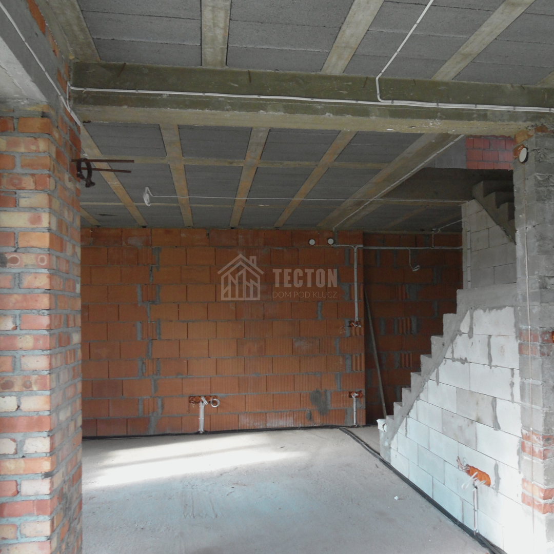 Dom posiada dwie komfortowe łazienki, co zapewnia wygodę wszystkim domownikom. Atutem jest również przestronny korytarz, który pomaga utrzymać porządek i izoluje część mieszkalną od wejścia.