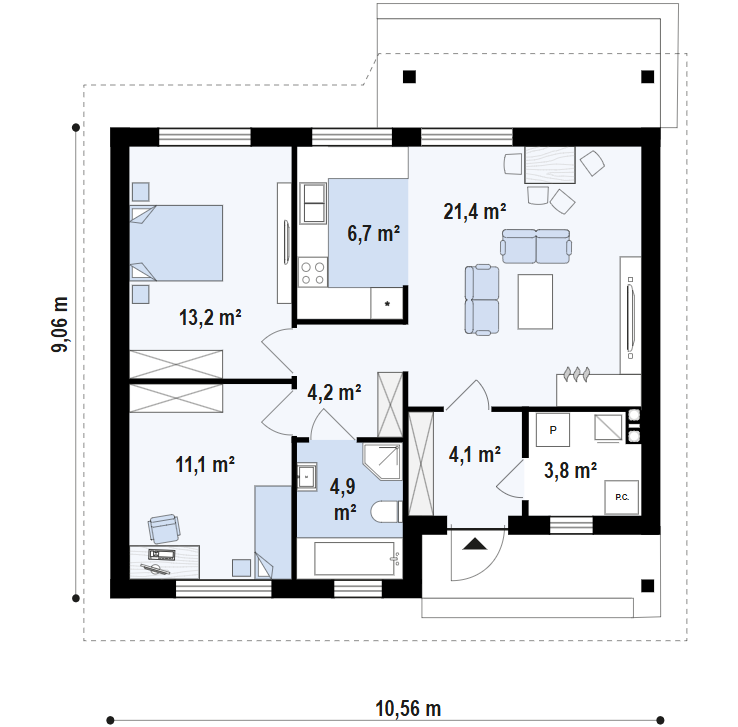 Minimalne wymiary działki: 16,56 × 17,06 m