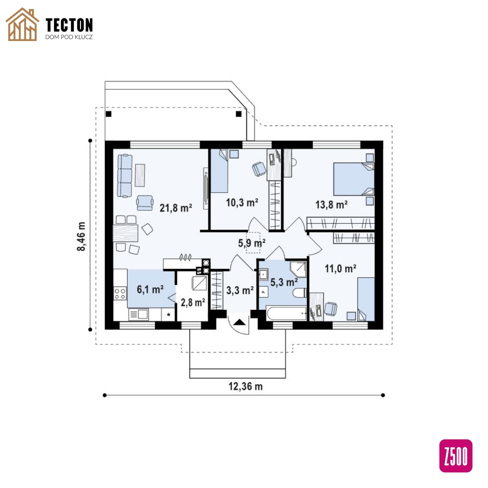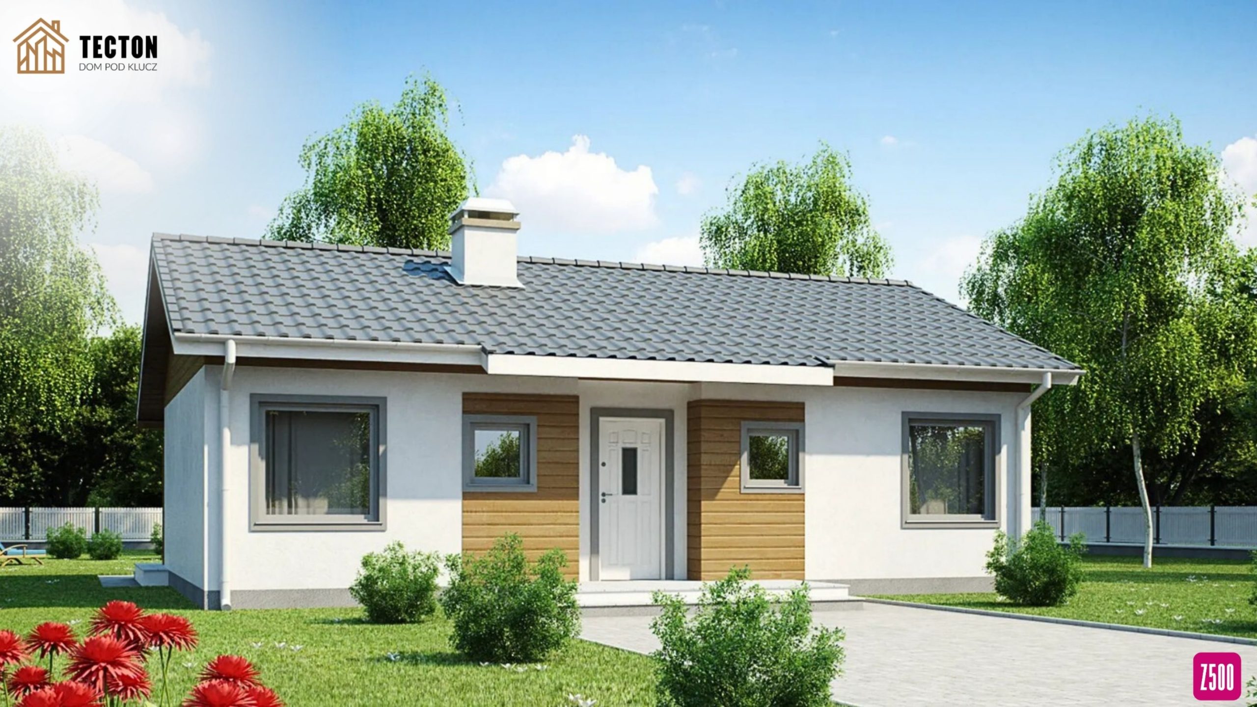 Projekt Z7 to propozycja dla osób szukających niewielkiego, taniego w budowie domu parterowego z dachem dwuspadowym. Prosta i nowoczesna bryła budynku gwarantuje szybką i ekonomiczną realizację, a jednocześnie zachowuje wyjątkowy urok dzięki drewnianym akcentom elewacji, które podkreślają jego współczesny charakter.