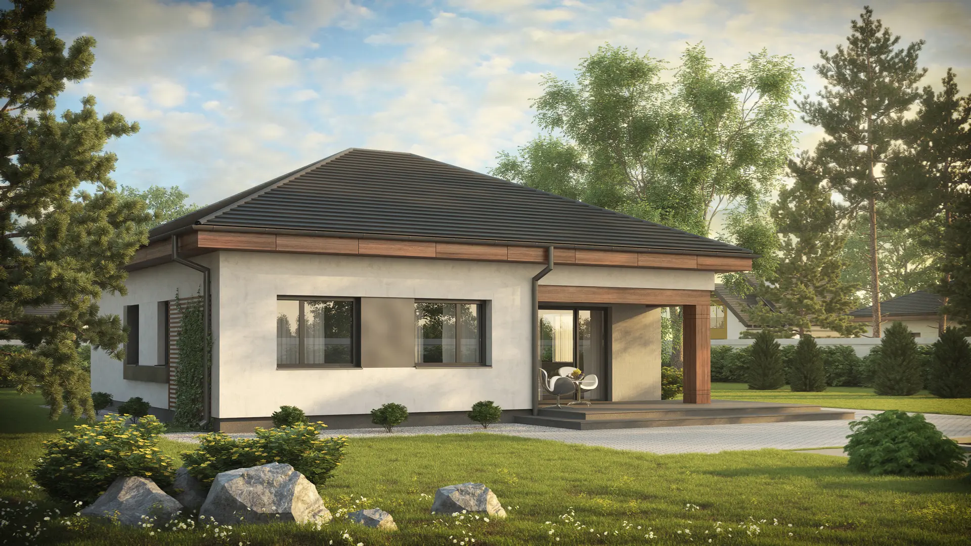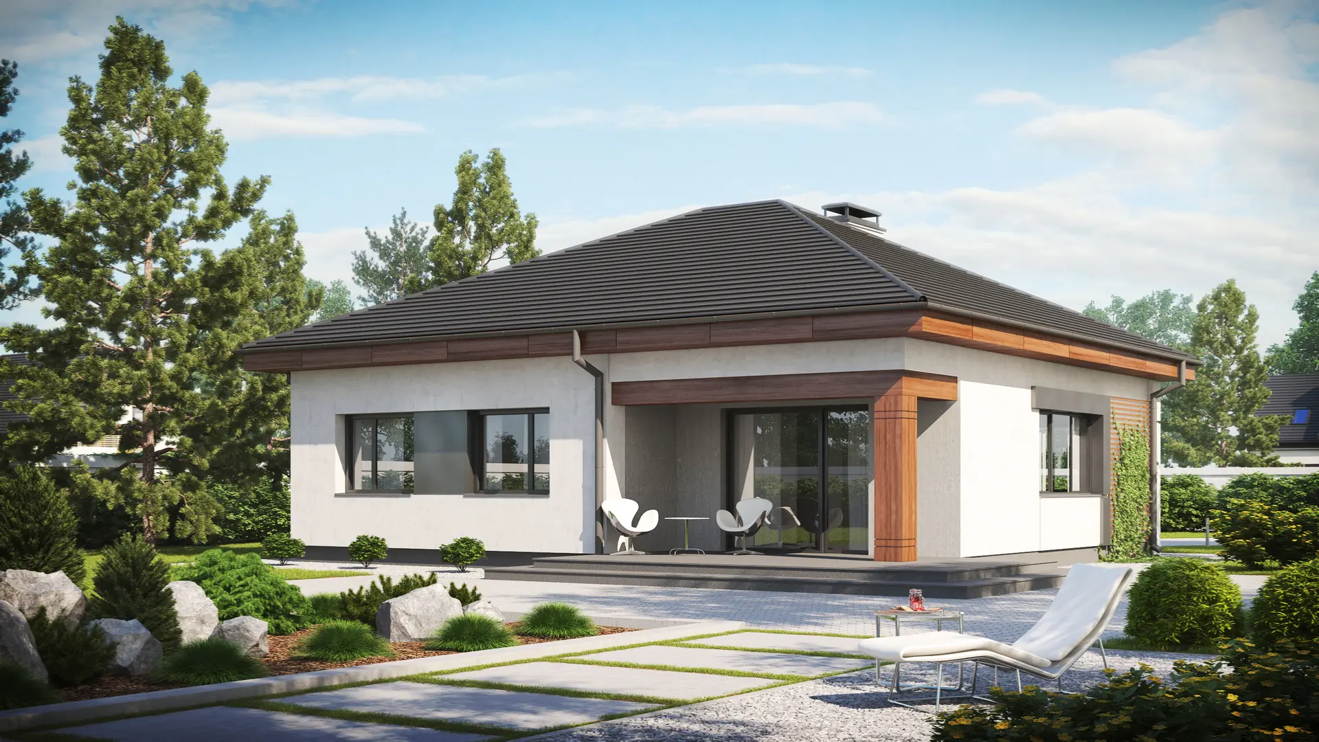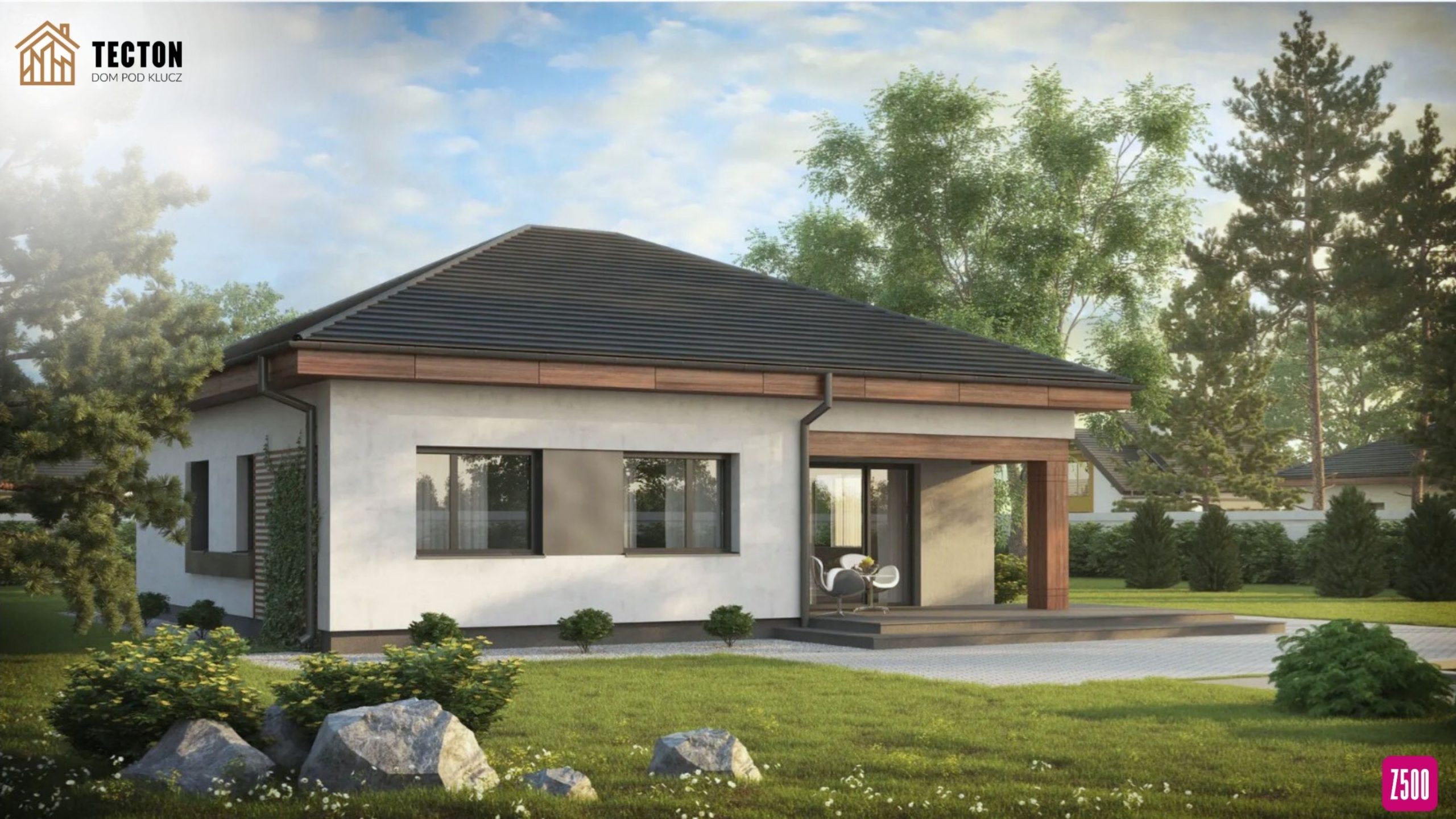 Projekt domu Z273 – nowoczesny, kompaktowy dom parterowy z dachem kopertowym