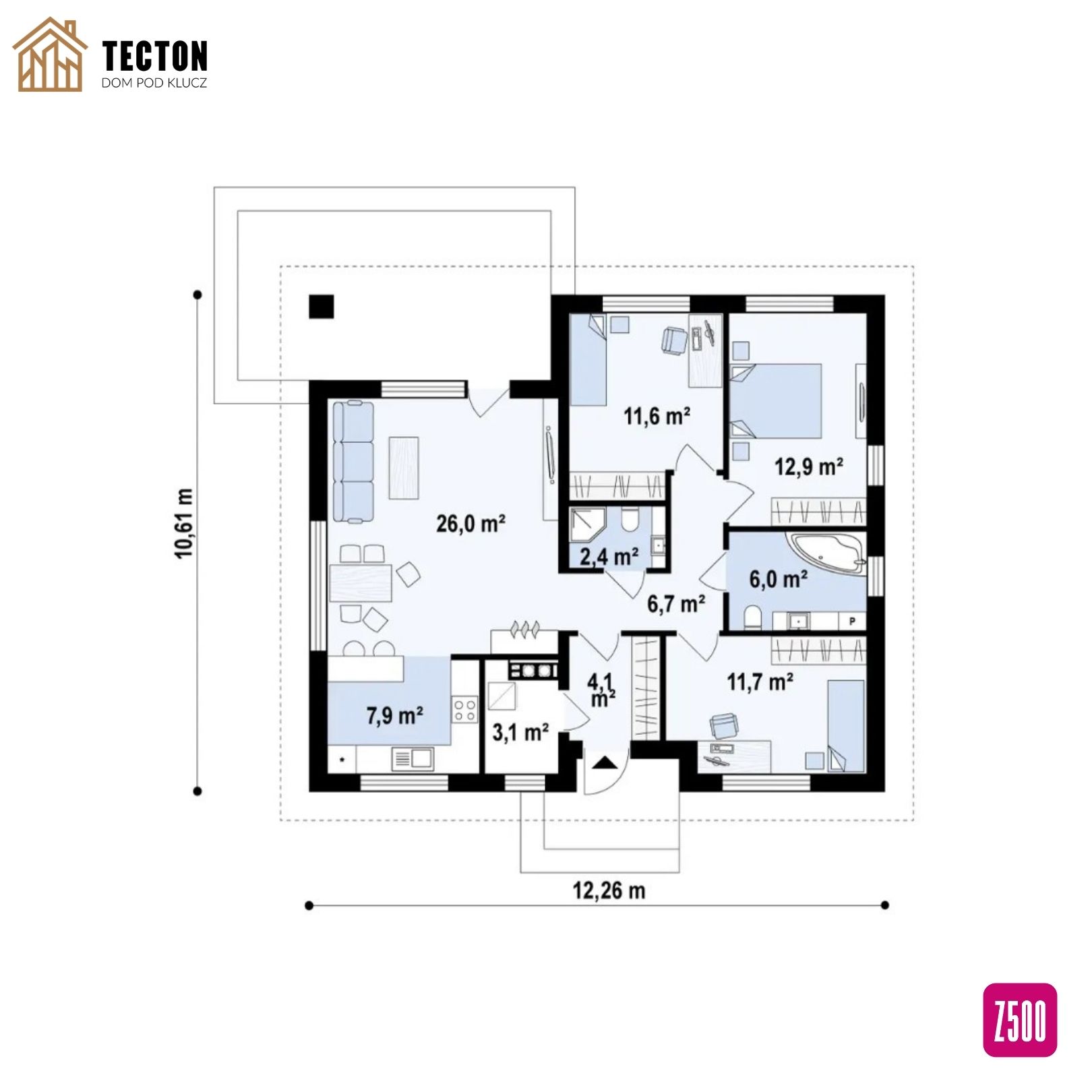 Projekt Z273 to propozycja dla osób, które cenią prostotę, funkcjonalność i nowoczesny design. Ten kompaktowy dom parterowy o powierzchni użytkowej 89,3 m² wyróżnia się czytelnym układem pomieszczeń, energooszczędnymi rozwiązaniami i niskimi kosztami realizacji dzięki przemyślanej konstrukcji.