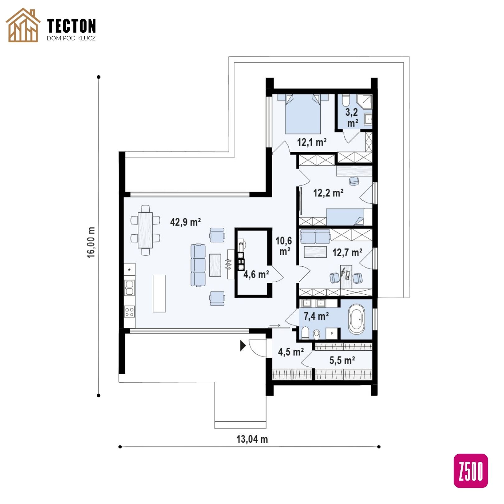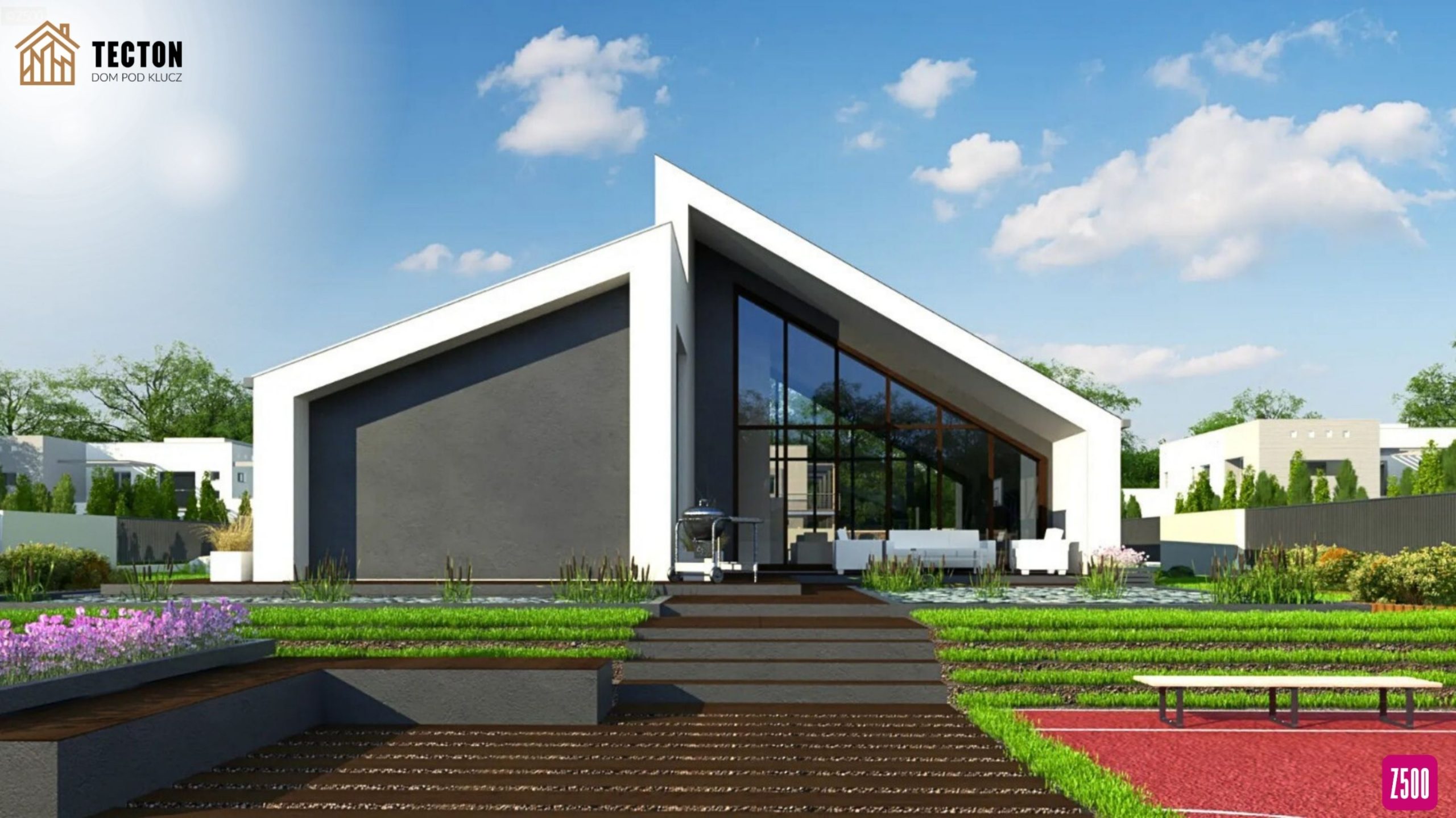 Zx201 D to projekt nowoczesnego domu parterowego o niebanalnej bryle i przemyślanym układzie funkcjonalnym. Pomimo kompaktowej powierzchni, oferuje przestronne wnętrze z efektownymi przeszkleniami, wysokimi sufitami i możliwością zastosowania antresoli. To propozycja dla osób, które cenią nowoczesny design, naturalne światło i otwartą przestrzeń.