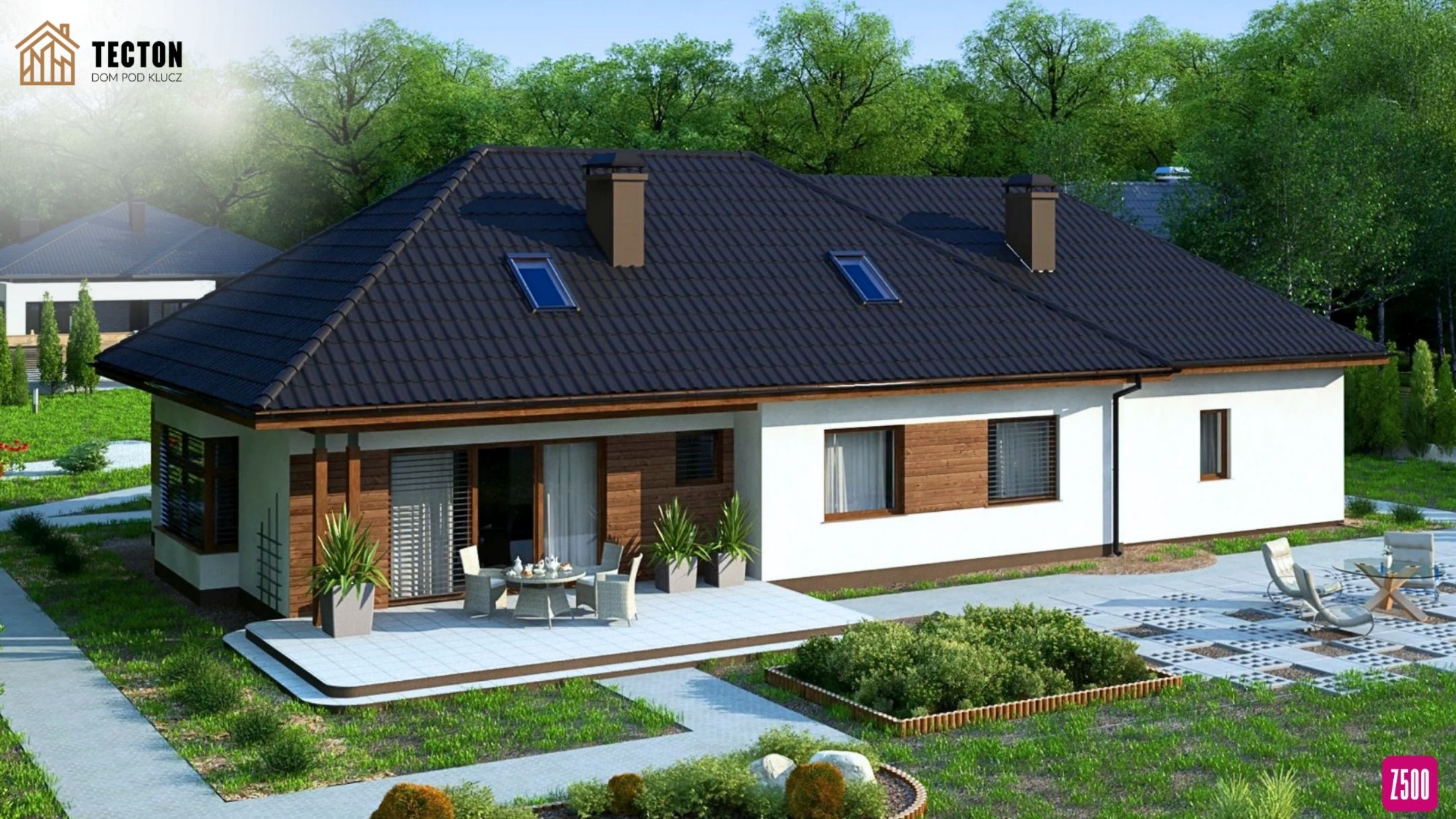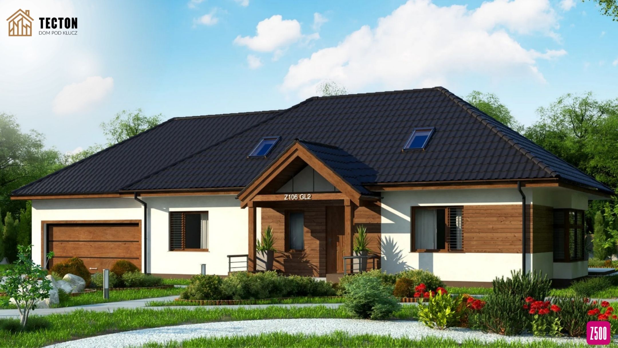Projekt Z106 GL2 to elegancki dom parterowy z garażem dwustanowiskowym, inspirowany stylem dworkowym i zaprojektowany z myślą o komforcie całej rodziny. Prosta bryła, kopertowy dach oraz naturalne materiały elewacyjne nadają budynkowi ponadczasowy i reprezentacyjny charakter.