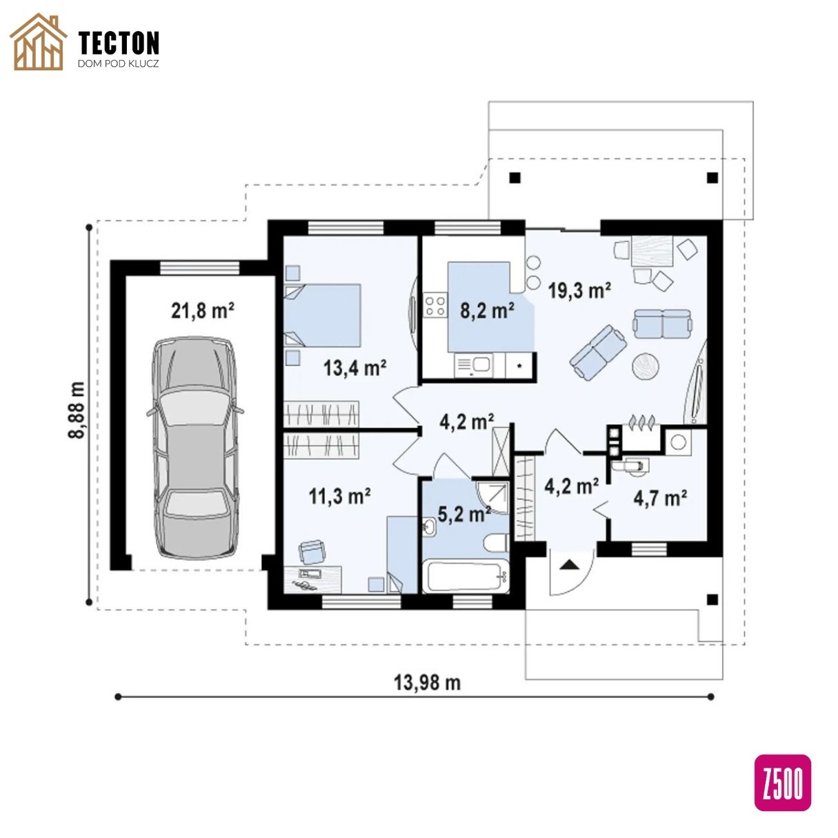 • Powierzchnia garażu: 21,18 m²